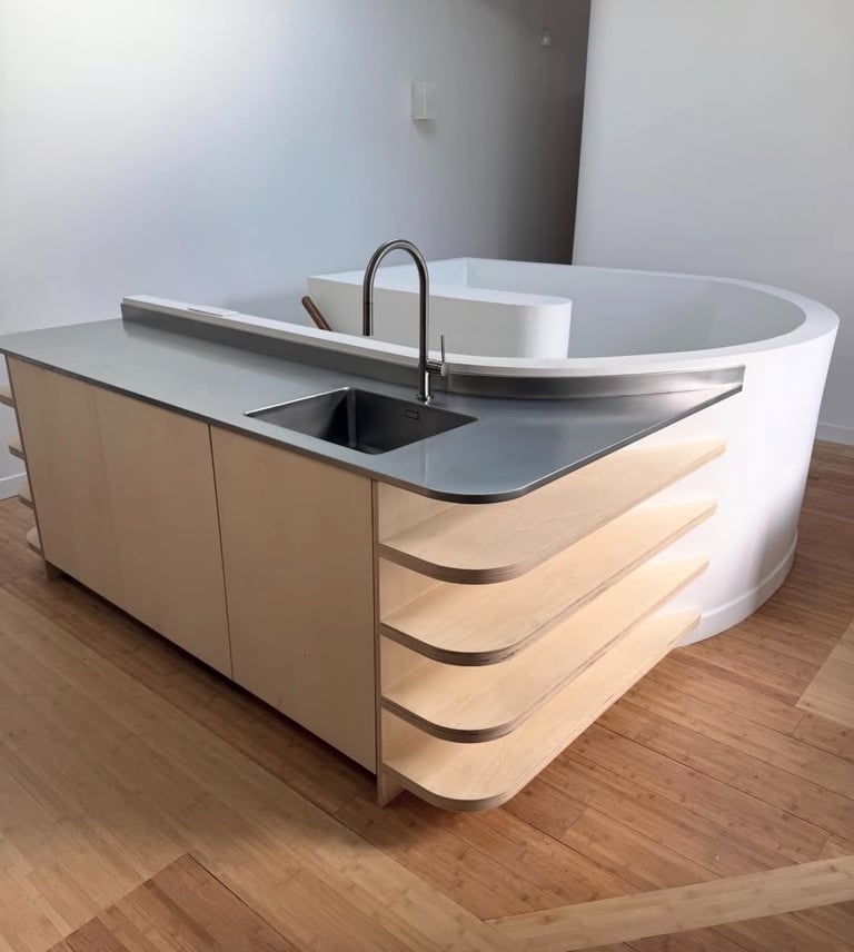 Mobilier et aménagements sur mesure en inox/acier : lignes épurées, robustesse, pour particuliers et professionnels.