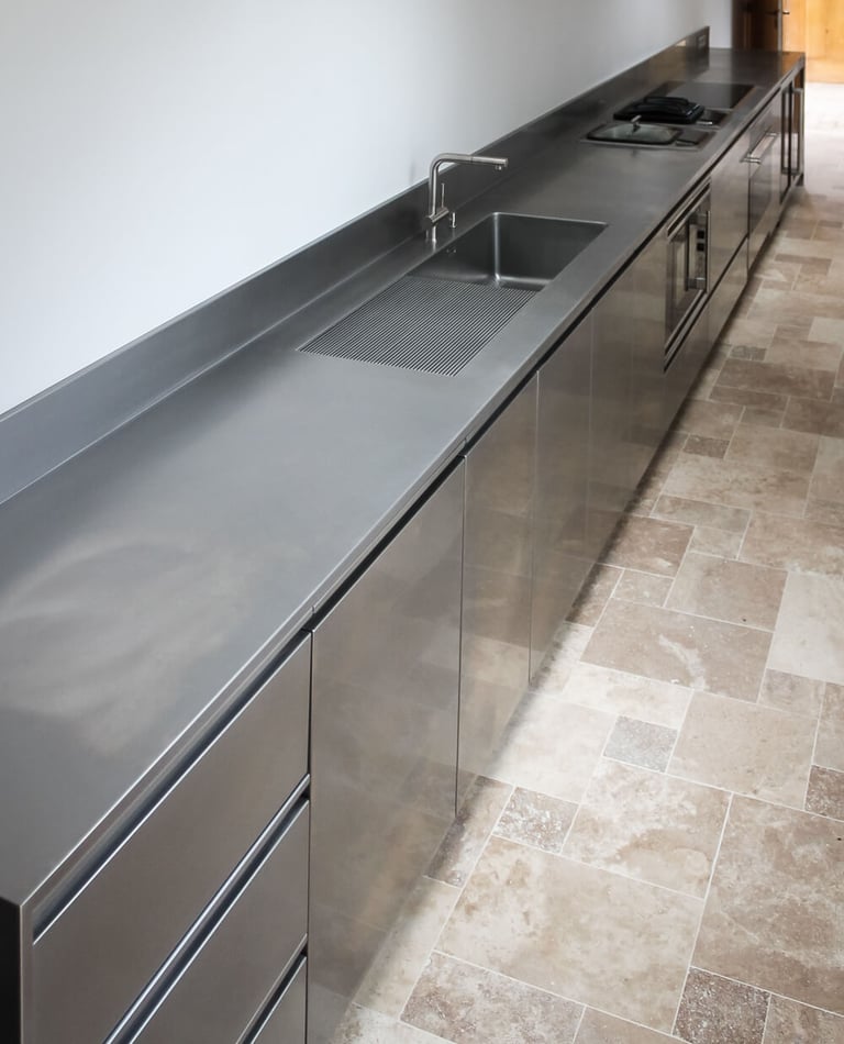 Plan de travail inox 304 épaisseur 4mm et habillage de portes en aciers